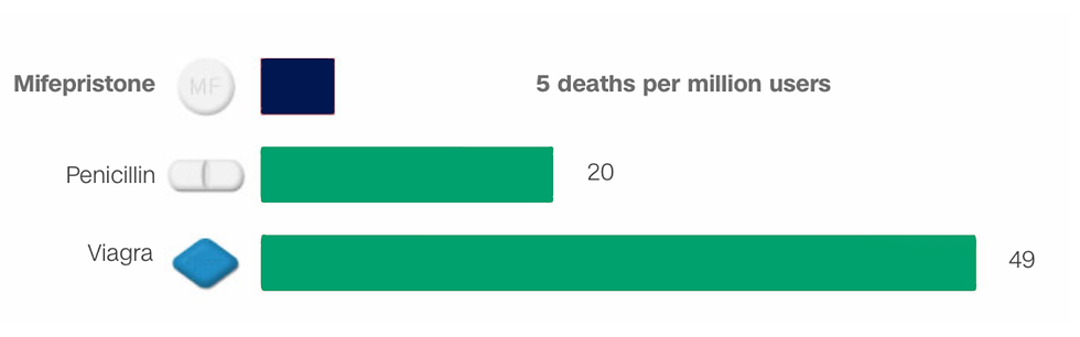 Commonly prescribed drugs like penicillin and Viagra have higher death rates than abortion medication.