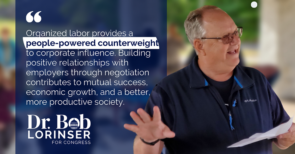Dr. Bob Lorinser gave the following speech Sun. Sept. 5 at the Houghton County Labor Day Eve Picnic. He also spoke on why he's running for Congress and closed with a town-hall-style QandA.