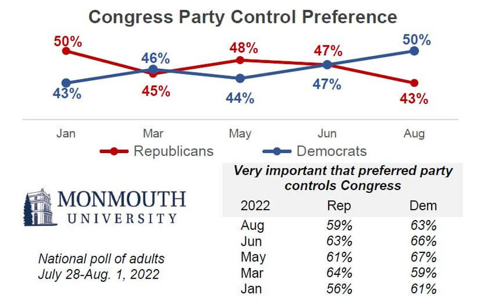 National polling by Monmouth in January also showed that the public favored Republicans for party control of Congress by 7% (+7R).
